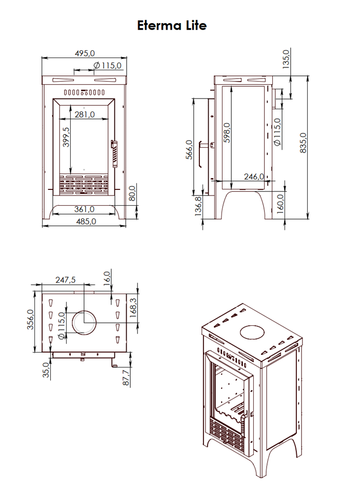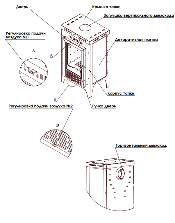 - Рекомендуемое топливо — сухие дрова с влажностью не более 18%