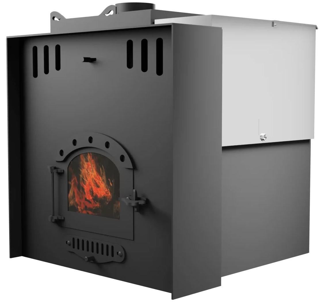 В комплектации данной модели предусмотрена система воздушного отопления с порталом (СВОП), которая способна обогреть комнату отдыха до 50 м3. В конструкции печи предусмотрен дополнительный контур. Система подключается к электричеству, вентилятор подает холодный воздух, который прогреваясь от печи выходит в комнату отдыха. Так же в комплект входит: вентилятор, гофрированная труба 1 метр, хомуты.